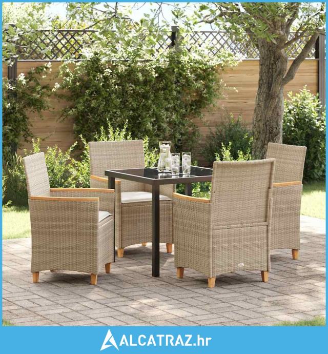 set za objedovanje u vrtu s 5 dijelova s jastučićima Bež Poly Ratan -
