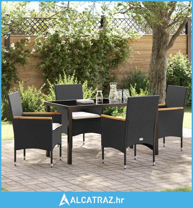 set za objedovanje u vrtu od 5 dijelova s jastučićima crni ratan - NOV