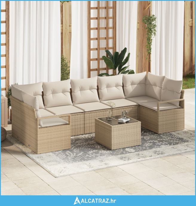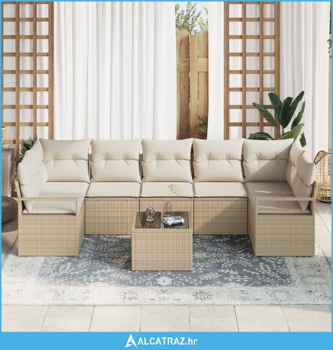 set sofe za vrt s jastučićima bež poli ratan, dvosedna vrtna sofa s ja