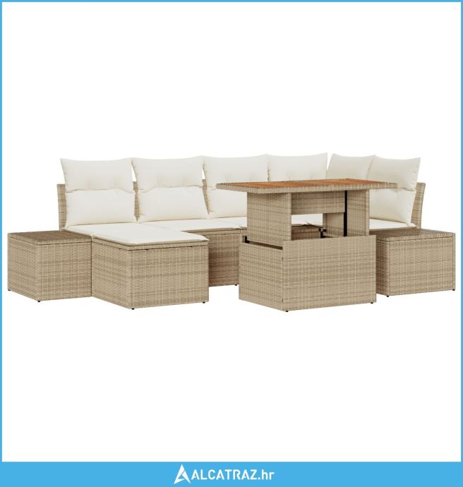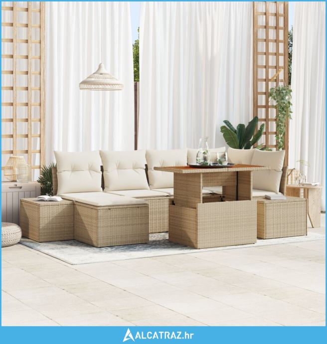 Set sofe za vrt Set od 7 Bež Ratan Set za blagovanje u vrtu - NOVO