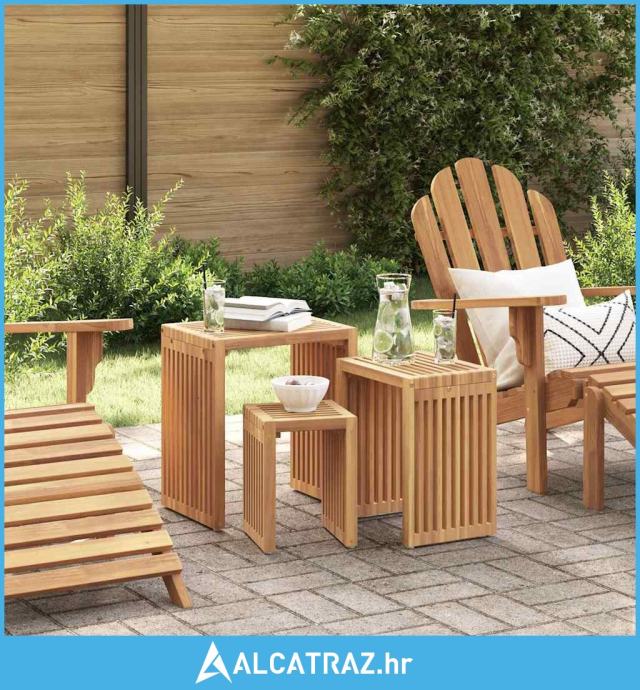 Ovaj set od tri stolića koji se slažu je napravljen od super čvrste tikovine, pružajući ti sjajnu kombinaciju izdržljivosti i stila za unutarnje i vanjske prostore. Svojim praktičnim rešetkastim dizajnom, ovi stolići poboljšavaju tvoje vanjsko uživanje, nudeći ti udoban prostor za objedovanje ili opuštanje s prijateljima i obitelji.