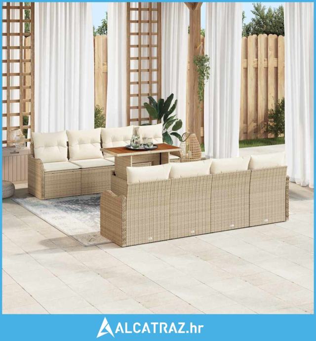 Set vanjskih sofa od 9 komada s jastučićima, bež poliratana - NOVO