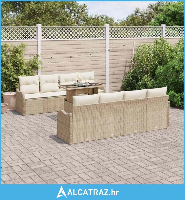 Set vanjskog namještaja od 10 dijelova s jastučićima, bež poli ratan -