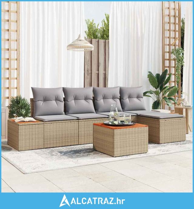 set vrtne garniture od 6 komada s jastučićima - Bež poliratan acacia -