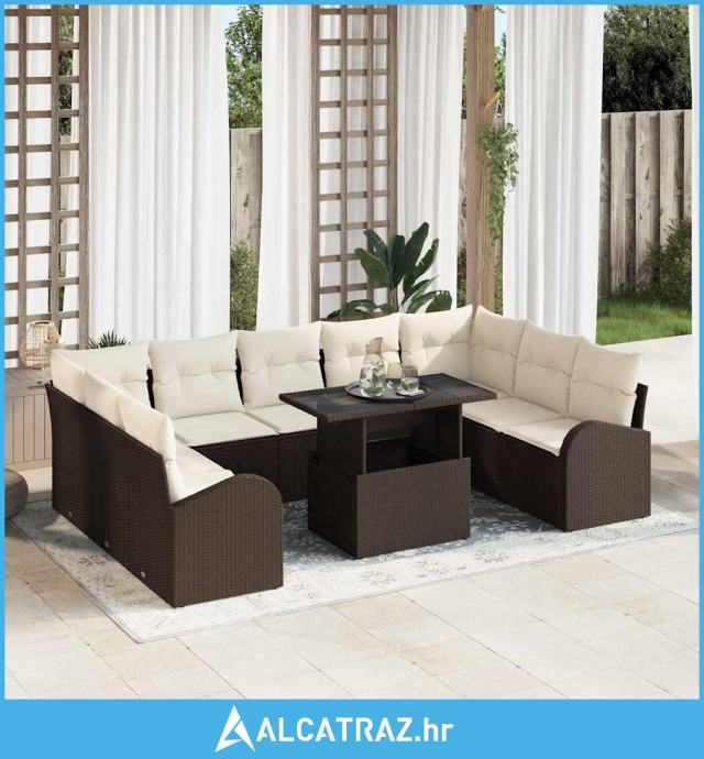 Set za vrtne sofe od 10 dijelova sa jastucima smešna poli ratan, 2-sje