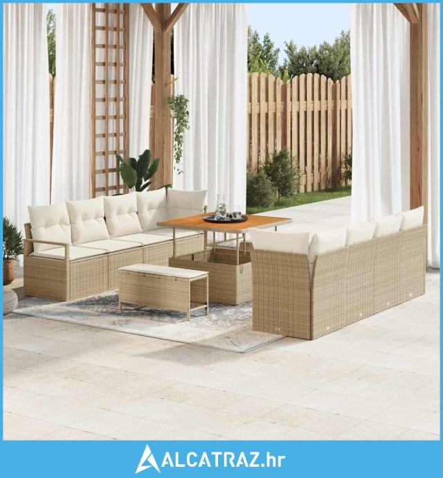 set vrtne sofe od 11 dijelova s jastučićima bež poly rattan akacija -