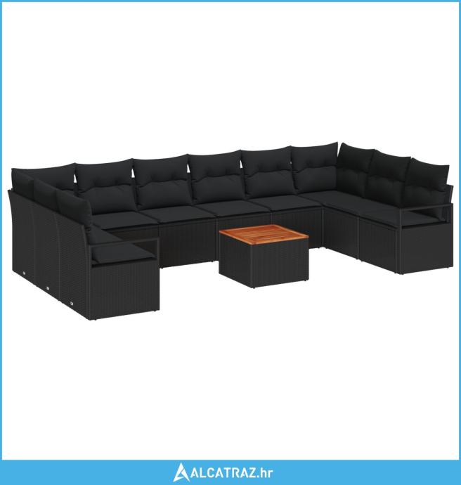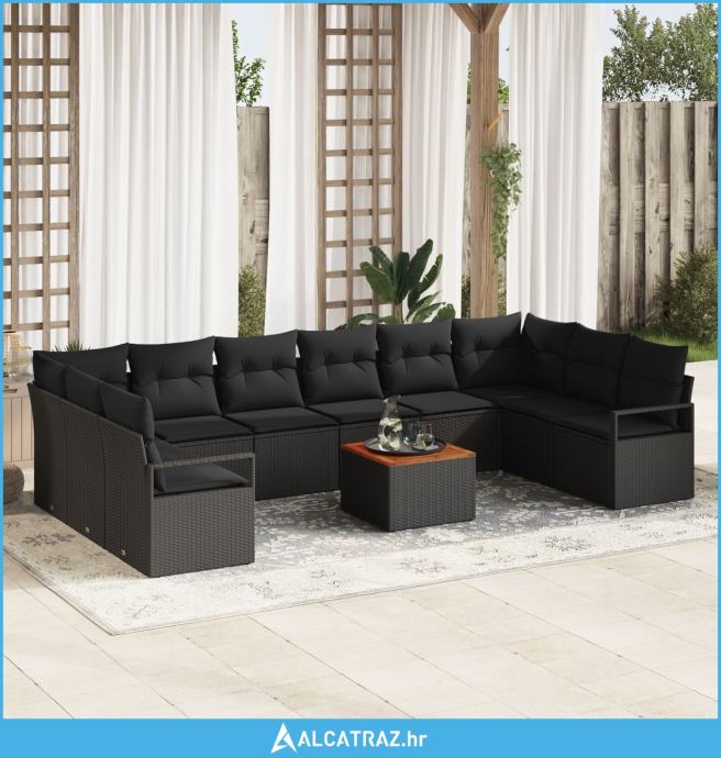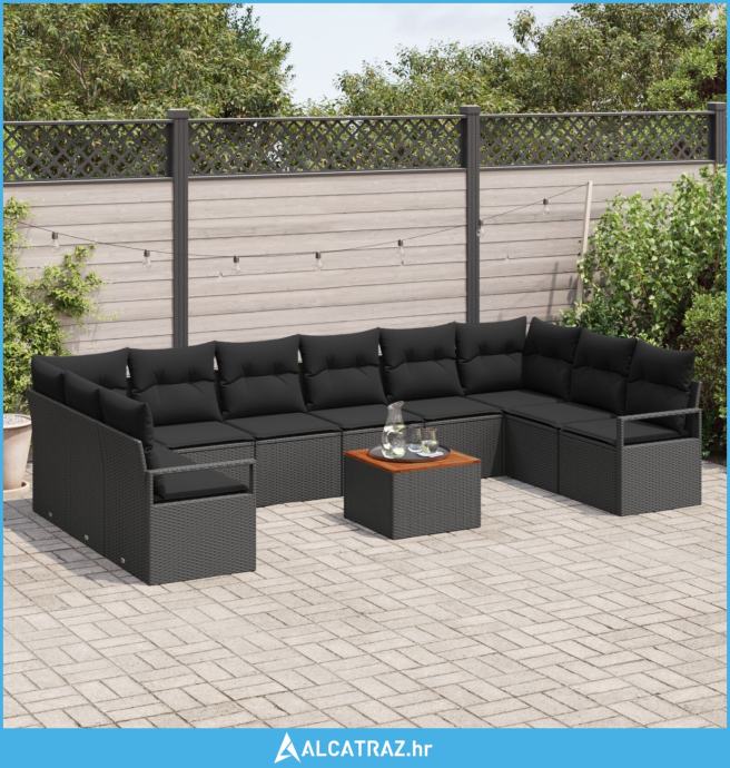 set vrtne sofe od 11 dijelova s jastučićima crni poli ratan akacija, d