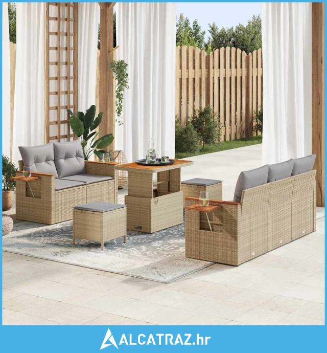 Set vrtne sofe od 8 dijelova s jastučićima bež Poli ratan akacija, Set