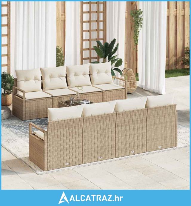 Set vrtne sofe od 9 dijelova s bež jastucima, poly rattan - NOVO
