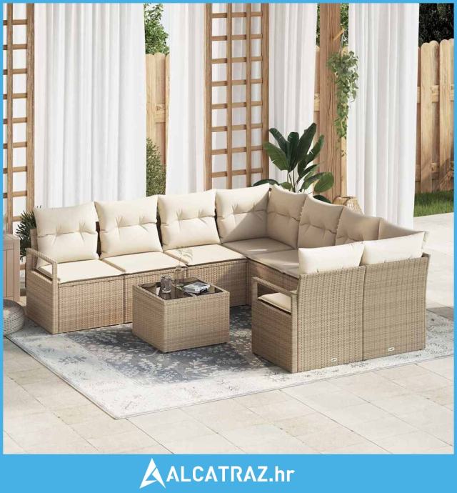 set vrtne sofe od 9 dijelova s jastučićima, bež, poli ratan - NOVO