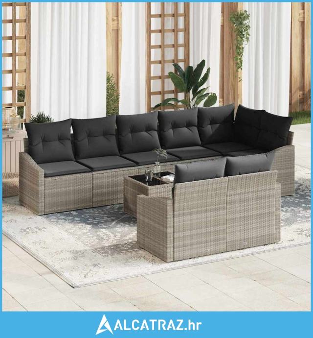Set vrtne sofe s jastučićima od 9 dijelova siva poli ratan - NOVO