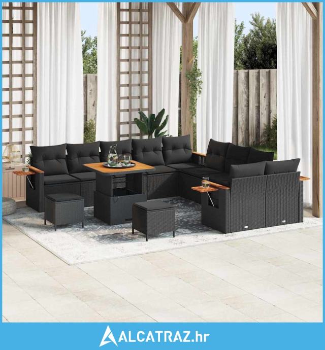 set za vrtni kauč od 13 komada s jastučićima Crni poli ratan akacija,