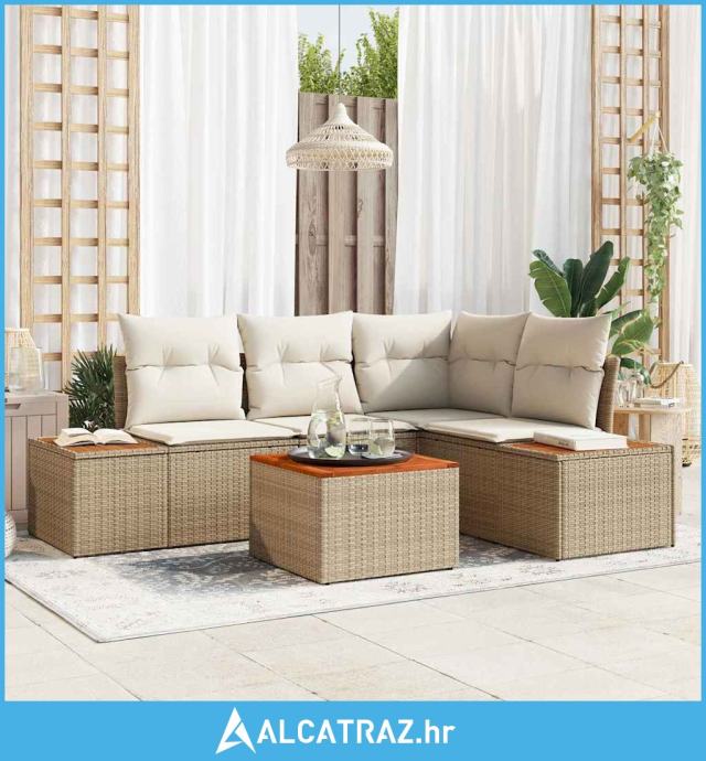 Set za vrtni kauč od 5 dijelova s jastučićima, bež, poliratan, od akac