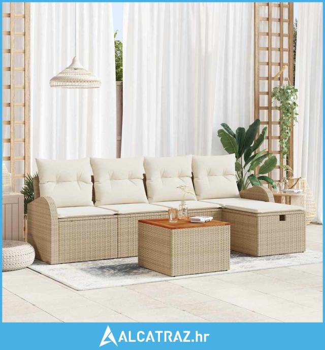 Ovaj 6-dijelni vrtni set kauča s jastučićima je stylish i funkcionalan dodatak tvom vanjskom prostoru. Savršen je za balkone, terase ili vrtove, udobno smještajući do 5 odraslih osoba, što ga čini odličnim izborom za okupljanje s obitelji i prijateljima dok zadržava elegantan izgled.