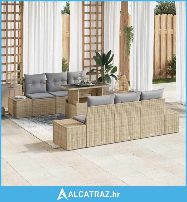 Set za vrtni kauč od 7 komada s jastučićima bež boje od poly ratana -