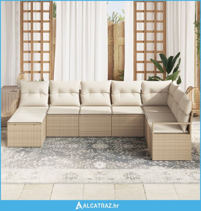 set za vrtni kauč od 8 komada s jastučićima bež poli ratan, dvosjedni