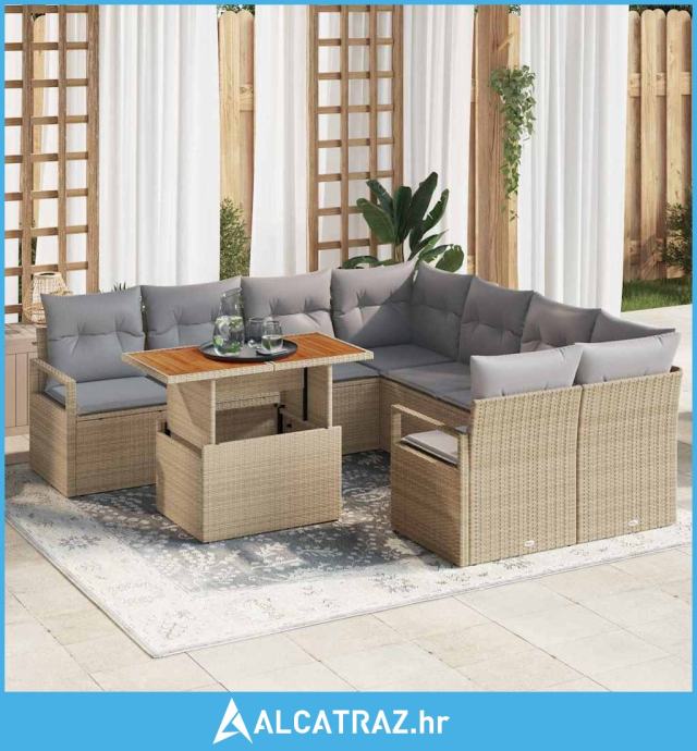 Set za vrtni kauč s jastučićima, bež poli ratan, 9 dijelova, 2-sjedala