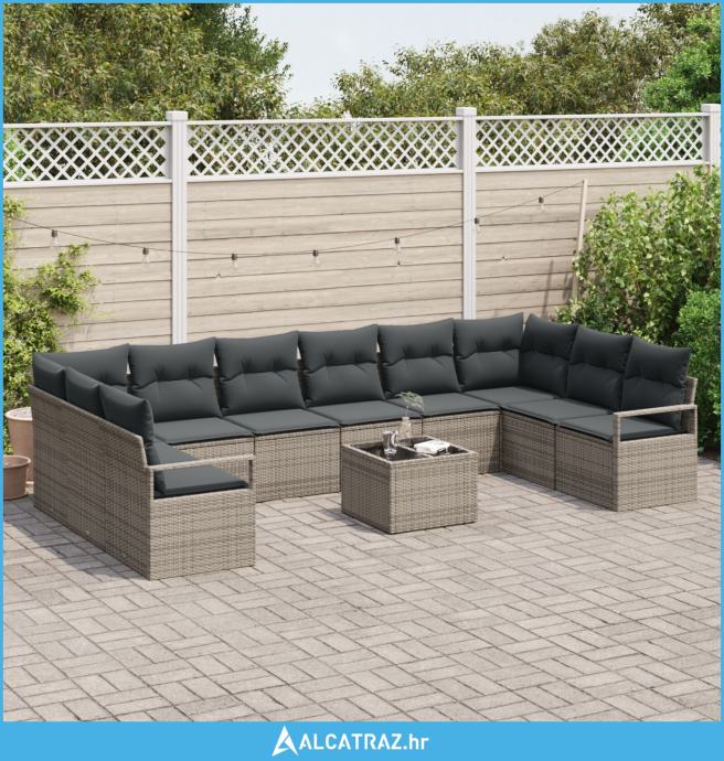 Set vrtnih kauča od 10 dijelova s jastučićima crni poli ratan, Kauč za