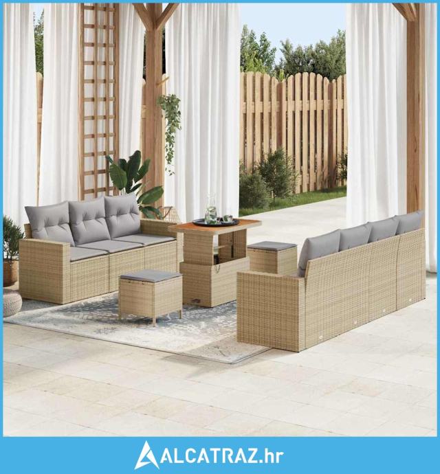 set vrtnih kauča od 10 komada s jastučićima bež poli ratan akacija - N