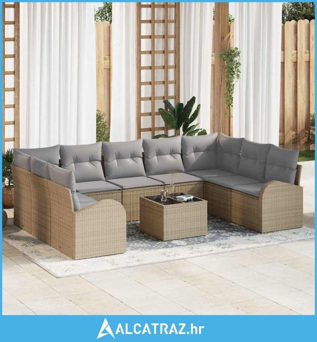 Set vrtnih kauča od 10 komada s jastučićima u crnom poli ratan - NOVO