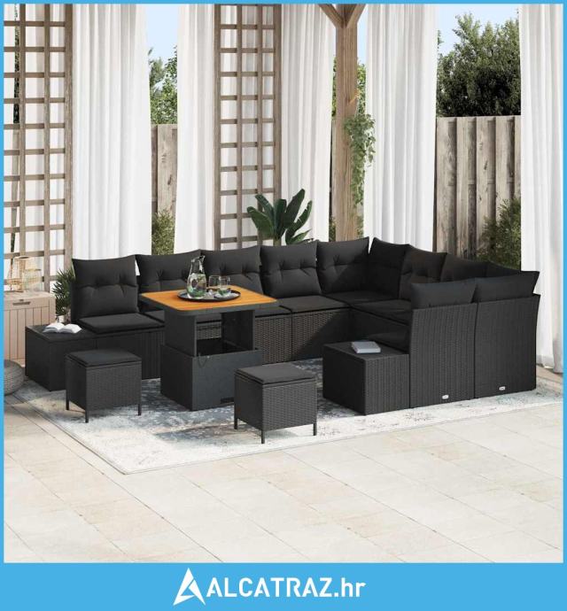 set vrtnih kauča od 12 komada s jastučićima crni poliratan akacija - N