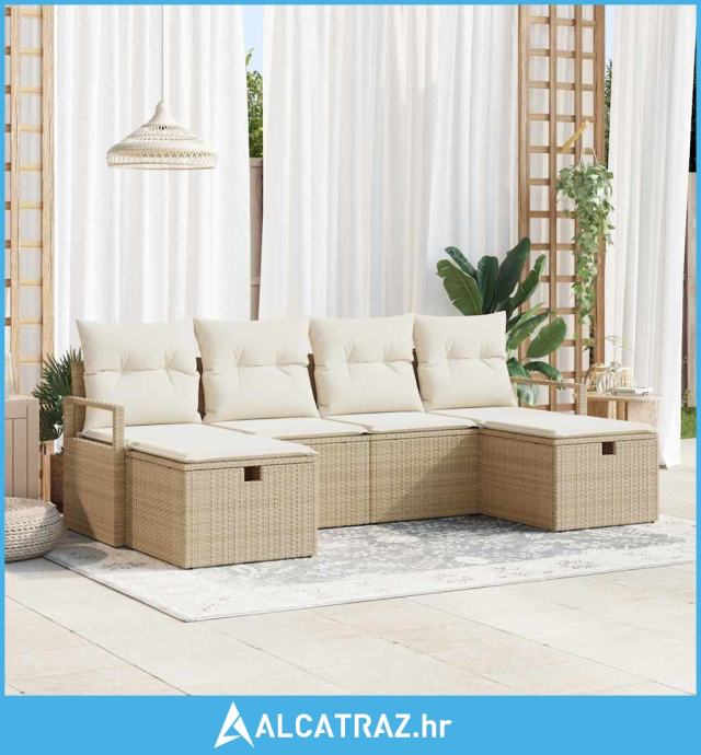 Set vrtnih kauča od 6 dijelova s jastučićima, bež poli ratan, 2-sjedni