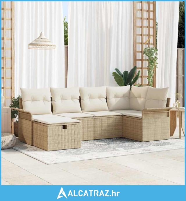 set vrtnih kauča od 6 dijelova s jastučićima bež poli ratan - NOVO
