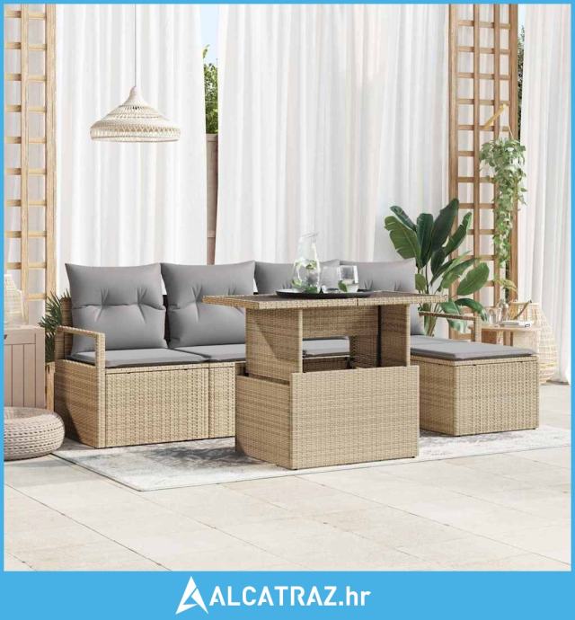 set vrtnih kauča od 6 dijelova s jastučićima bež poli ratan - NOVO