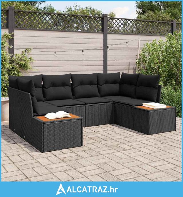 set vrtnih kauča od 6 dijelova s jastučićima crni poli ratan akacija -