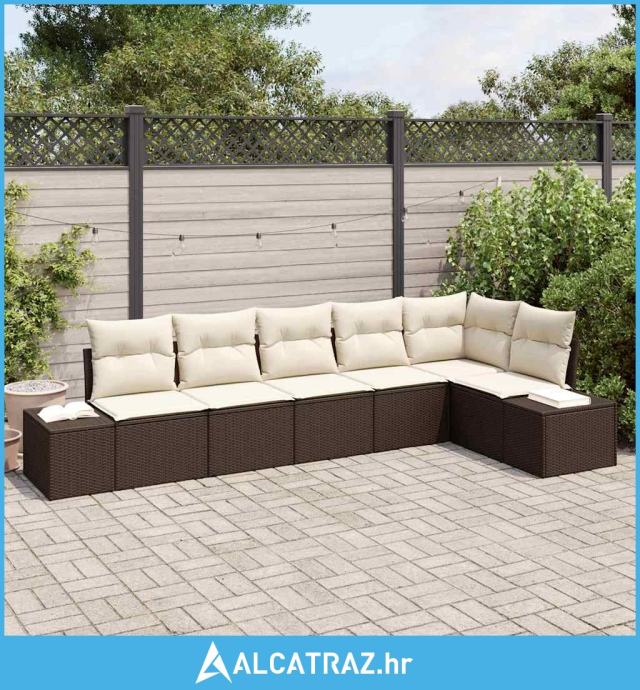 set vrtnih kauča od 6 dijelova s jastučićima smeđeg ratana - NOVO