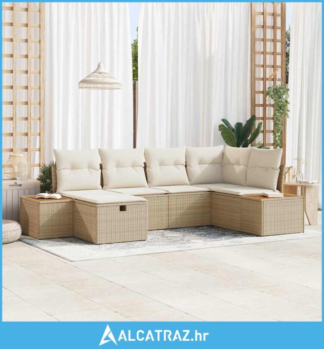 set vrtnih kauča od 6 komada s jastučićima bež poliratana - NOVO
