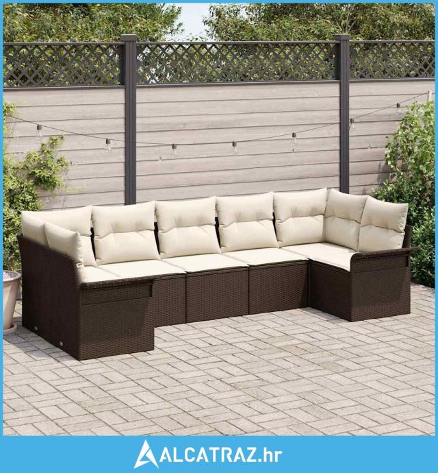 set vrtnih kauča od 7 dijelova s jastučićima smeđi poliratan - NOVO
