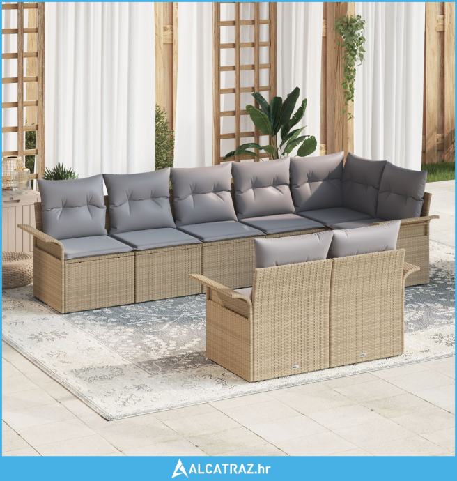 Set vrtnih kauča od 8 dijelova s jastučićima bež poli ratan - NOVO