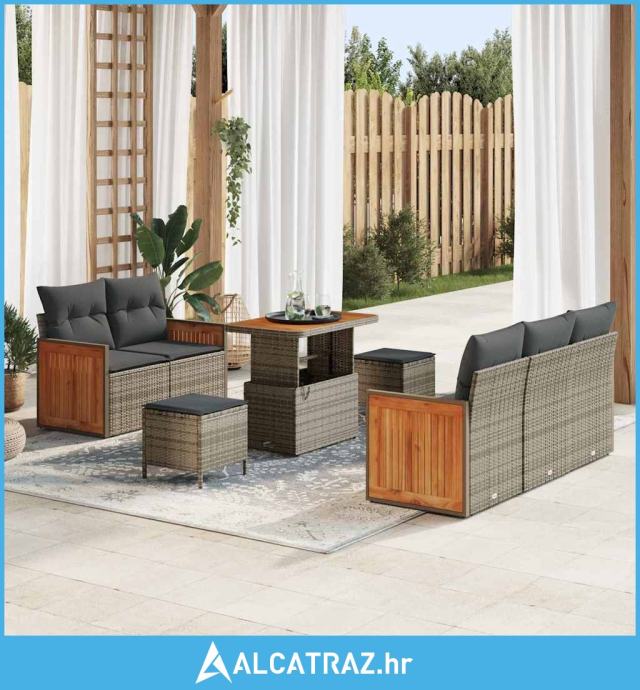set vrtnih kauča od 8 komada s jastučićima sivi poli ratan akacija - N