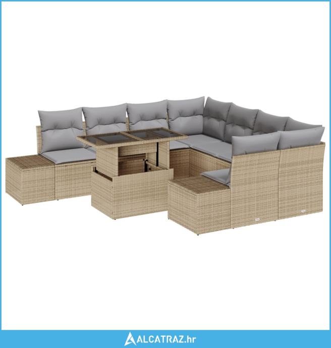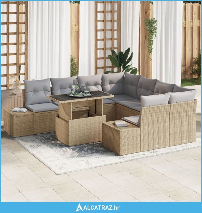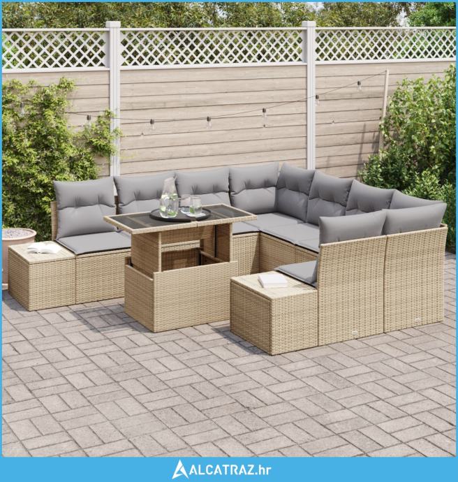 set vrtnih kauča od 9 dijelova s jastučićima bež poli ratan - NOVO