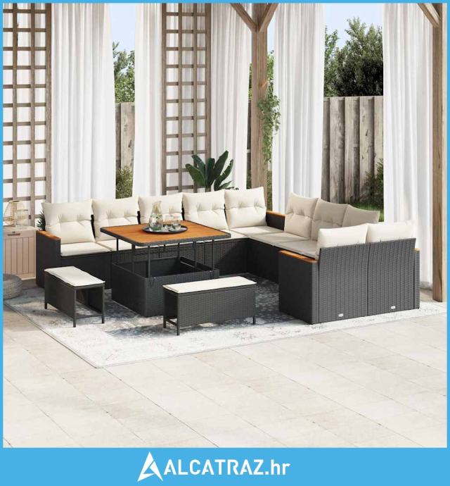 Set vrtnih kauča s jastučićima Crni Poli ratan Akacija 13 komada - NOV