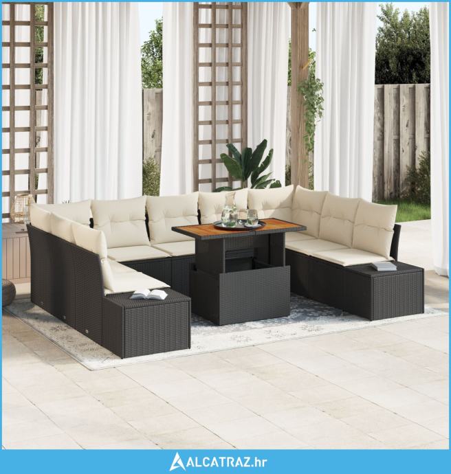 Ovaj set vanjskog namještaja od 10 dijelova je savršen za podizanje atmosfere na otvorenom. Ima moderan dizajn koji odiše šarmom, idealan za vrtove, terase ili zimske bašte. S svojim elegantnim karakteristikama, poziva na opuštanje i idealan je za okupljanje s prijateljima ili obitelji.