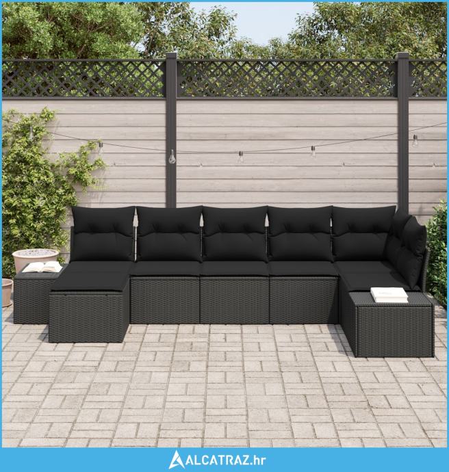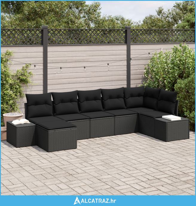 Set Vrtnih Kauča Set od 7 Crna Poli Ratan, Poliester Jastuci - NOVO