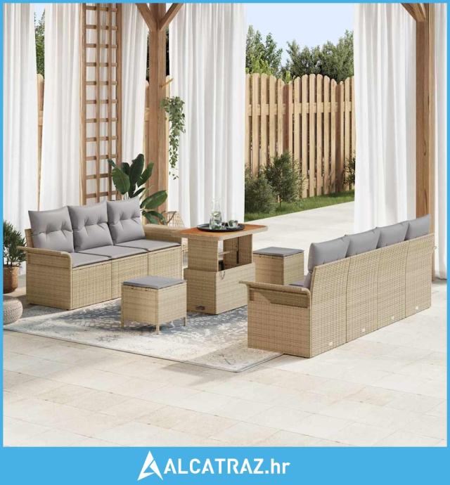 set vrtnih sofa od 10 dijelova s jastučićima Bež poli ratan akacija, 2