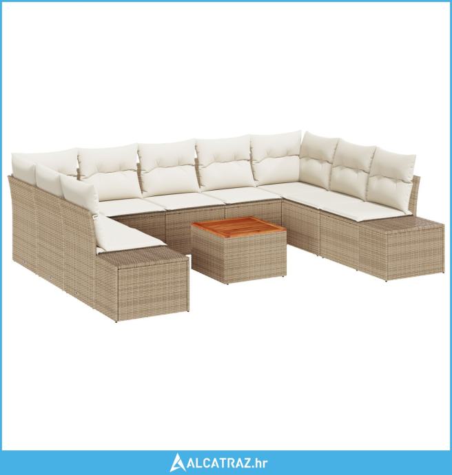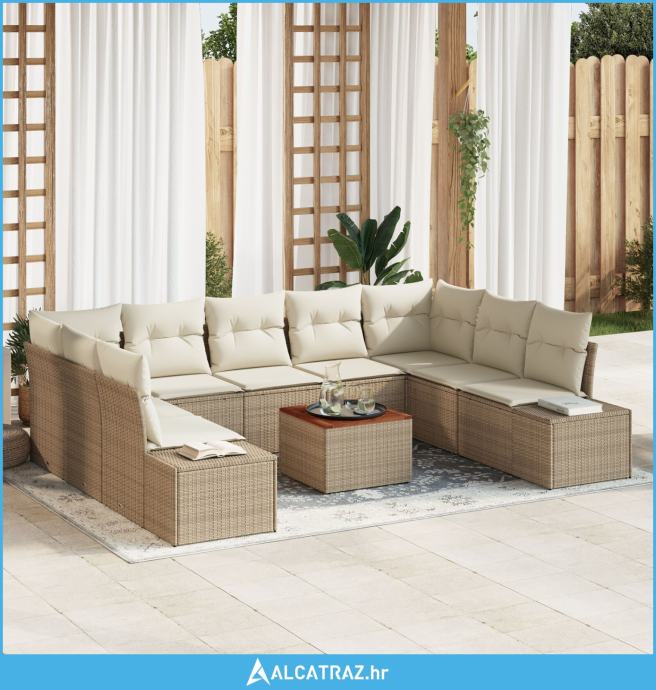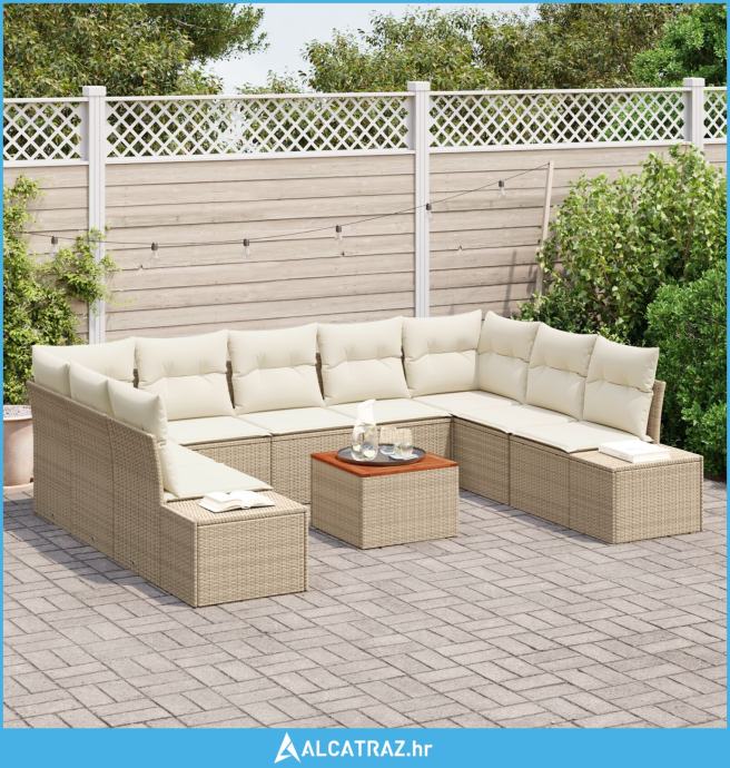 set vrtnih sofa od 10 komada s jastučićima bež poli ratan akacija - NO