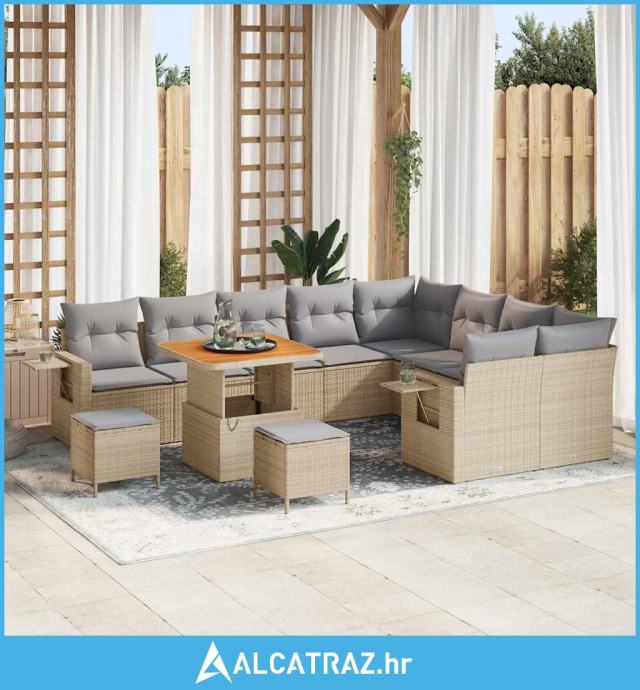 set vrtnih sofa od 12 dijelova s jastučićima, bež poly ratan akacija -