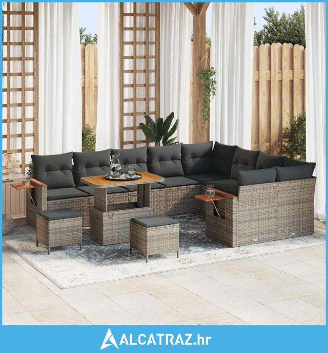 set vrtnih sofa od 12 dijelova s jastučićima siva poly ratan akacija,