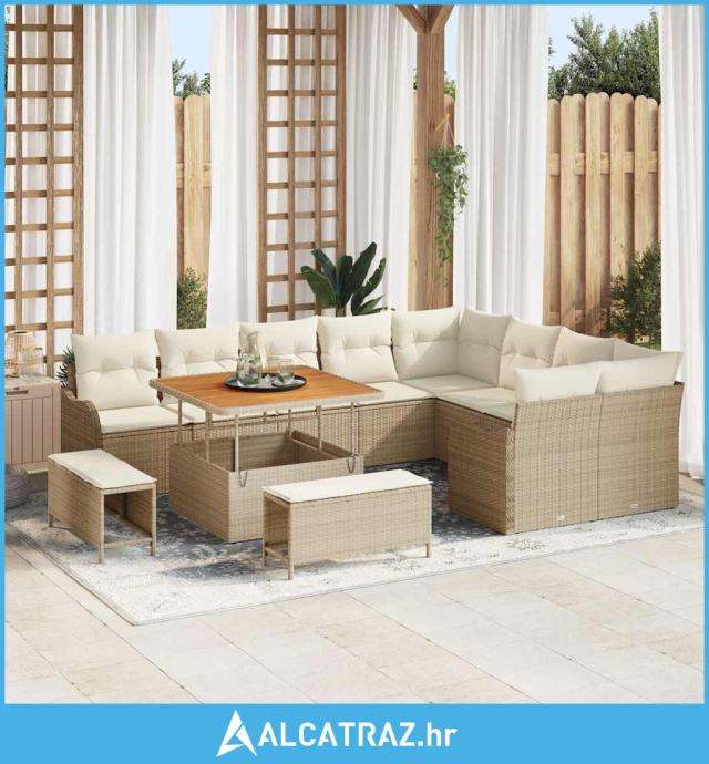 Set vrtnih sofa od 12 komada s jastučićima bež poli ratan akacija - NO