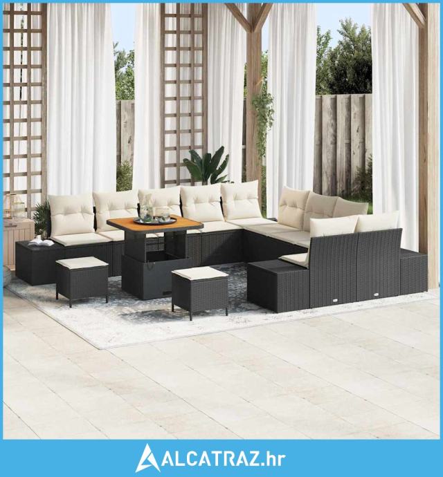 set vrtnih sofa od 13 dijelova s jastučićima crni poli ratan akacija -