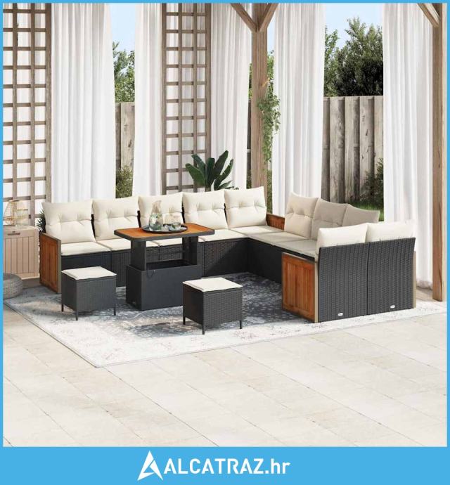 set vrtnih sofa od 13 komada s jastucima crni poli ratan akacija - NOV
