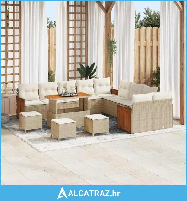 set vrtnih sofa od 14 komada s jastučićima bež poli ratan akacija, 2-s