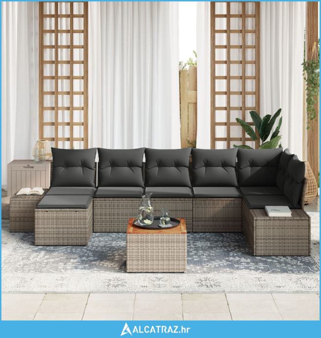 set vrtnih sofa od 8 dijelova s jastucima siva poli ratan akacija - NO