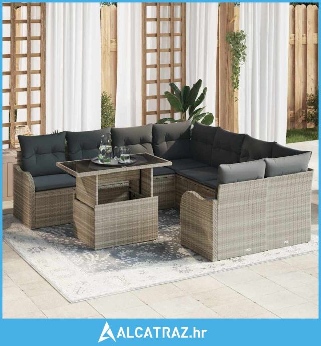 set vrtnih sofa od 9 dijelova s jastučićima svjetlosivi poli ratan, dv