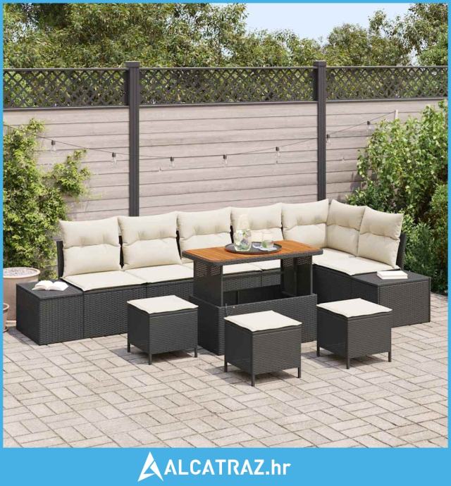 Set vrtnih sofa s jastučićima od 10 dijelova Crni poli ratan akacija -