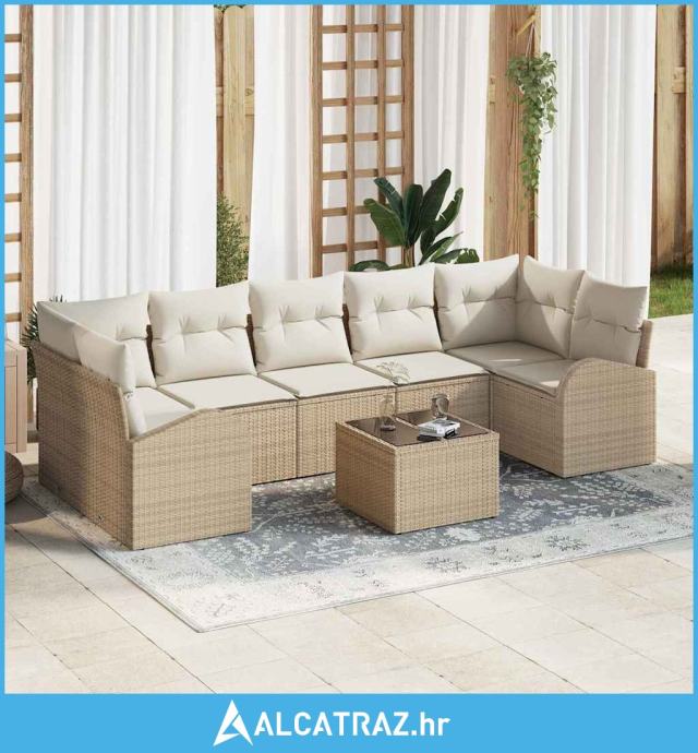 Ovaj set vrtnih sofa s 8 dijelova s jastučićima spaja dobar izgled i funkcionalnost, stvoren da uživaš na otvorenom. Moderni dizajn s bež poli ratan okvirom i udobnim krem jastučićima poziva te da se opustiš, bilo da uživaš na suncu ili organiziraš veselo druženje vani.